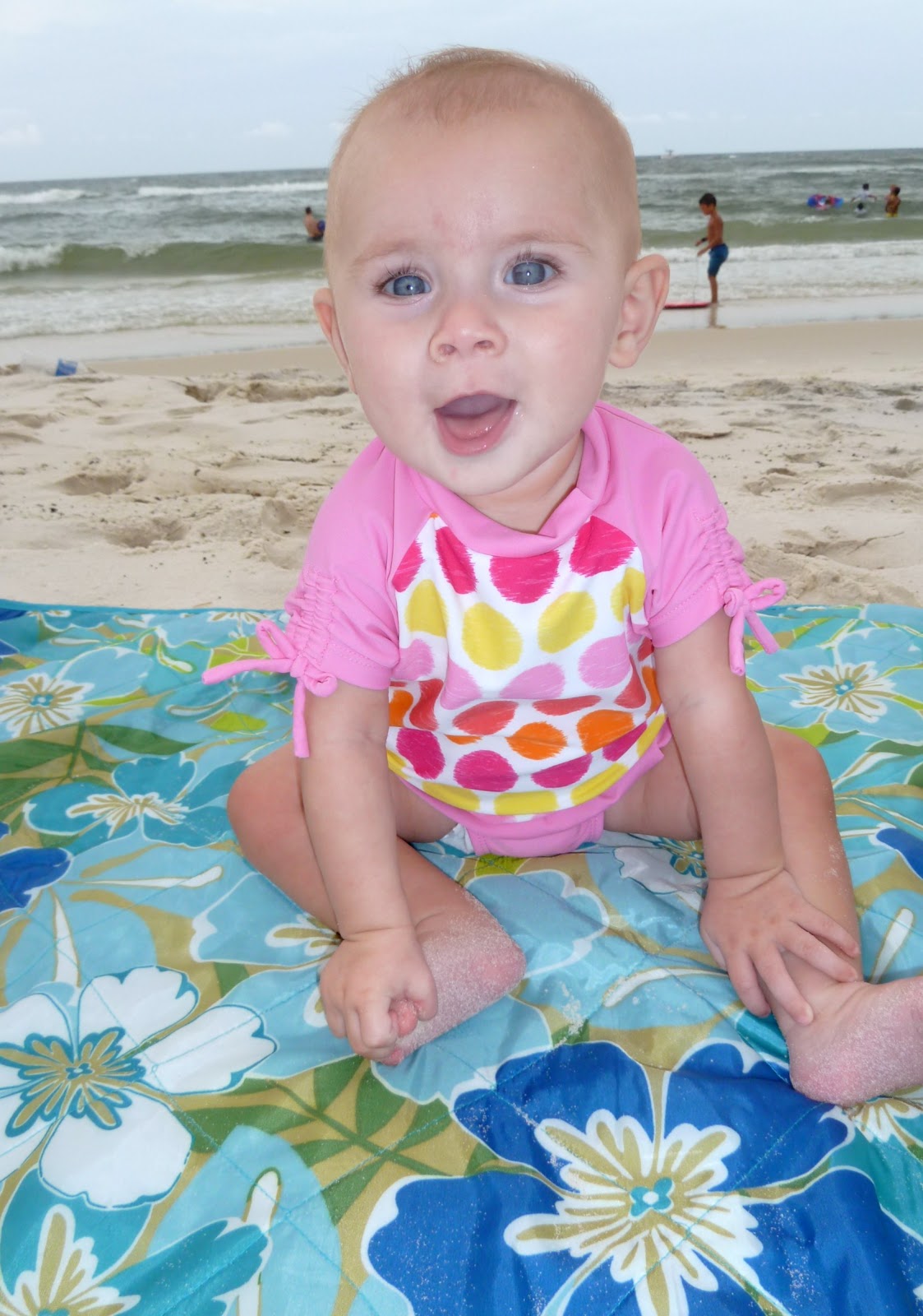 Also, our baby is cutting both of her bottom teeth at once.| See those little white nubs coming out right below her tongue? |